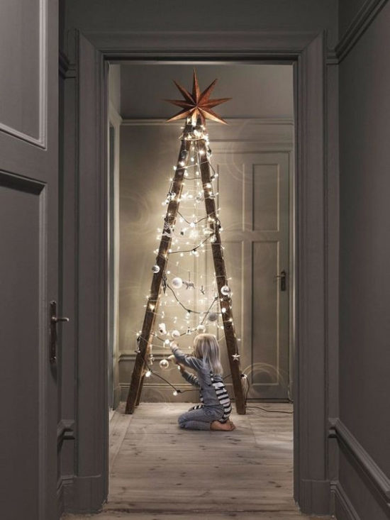 Le sapin zéro déchet par excellence ! Dépliez l’escabeau, pendez vos guirlandes et le tour est joué : petits et gros paquets s’y nichent sous l’œil admiratif des invité·es.